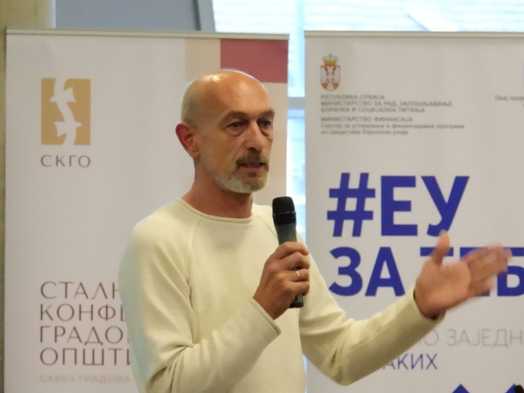 Tema namenskih transfera, nastavljena je izlaganjem Aleksandra Marinkovića, šefa Odeljenja za strateško planiranje i javne politike i koordinatora na programu EU Exchange 6 u SKGO, koji je predstavio analizu podataka o budžetima jedinica lokalne samouprave u oblasti socijalne zaštite.