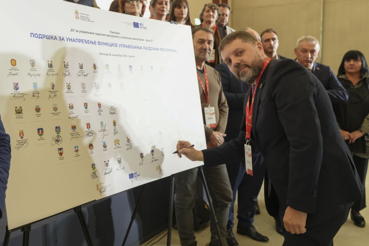 Svečano su potpisani i sporazumi u oblasti upravljanja ljudskim resursima u okviru Programa „EU za upravljanje ljudskim resursima u lokalnoj samoupravi - faza 3“, koji finansira Evropska unije, a kojim je obuhvaćeno 77 gradova i opština širom Srbije. Sporazume su potpisali predstavnici lokalnih samouprava, Zoran Kasalović, državni sekretar Ministarstva državne uprave i lokalne samouprave, Mauro di Veroli, šef Odeljenja za saradnju Delegacije Evropske unije i Nikola Tarbuk, generalni sekretar SKGO.