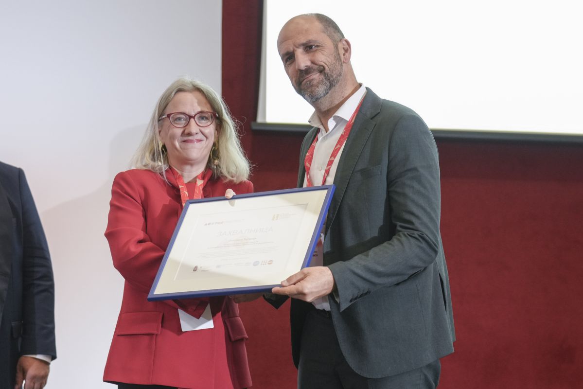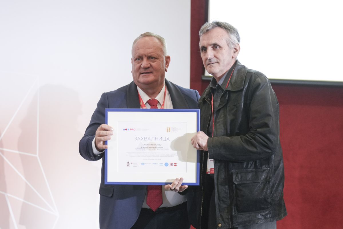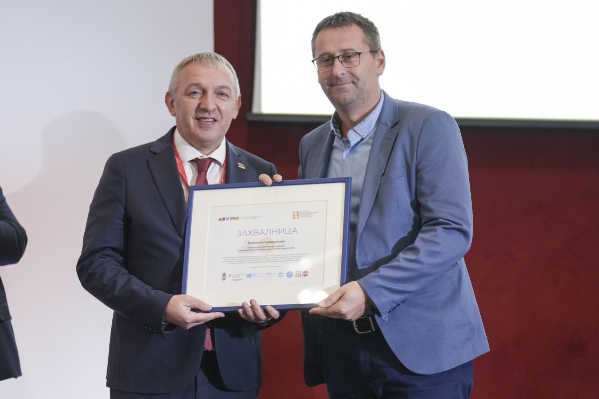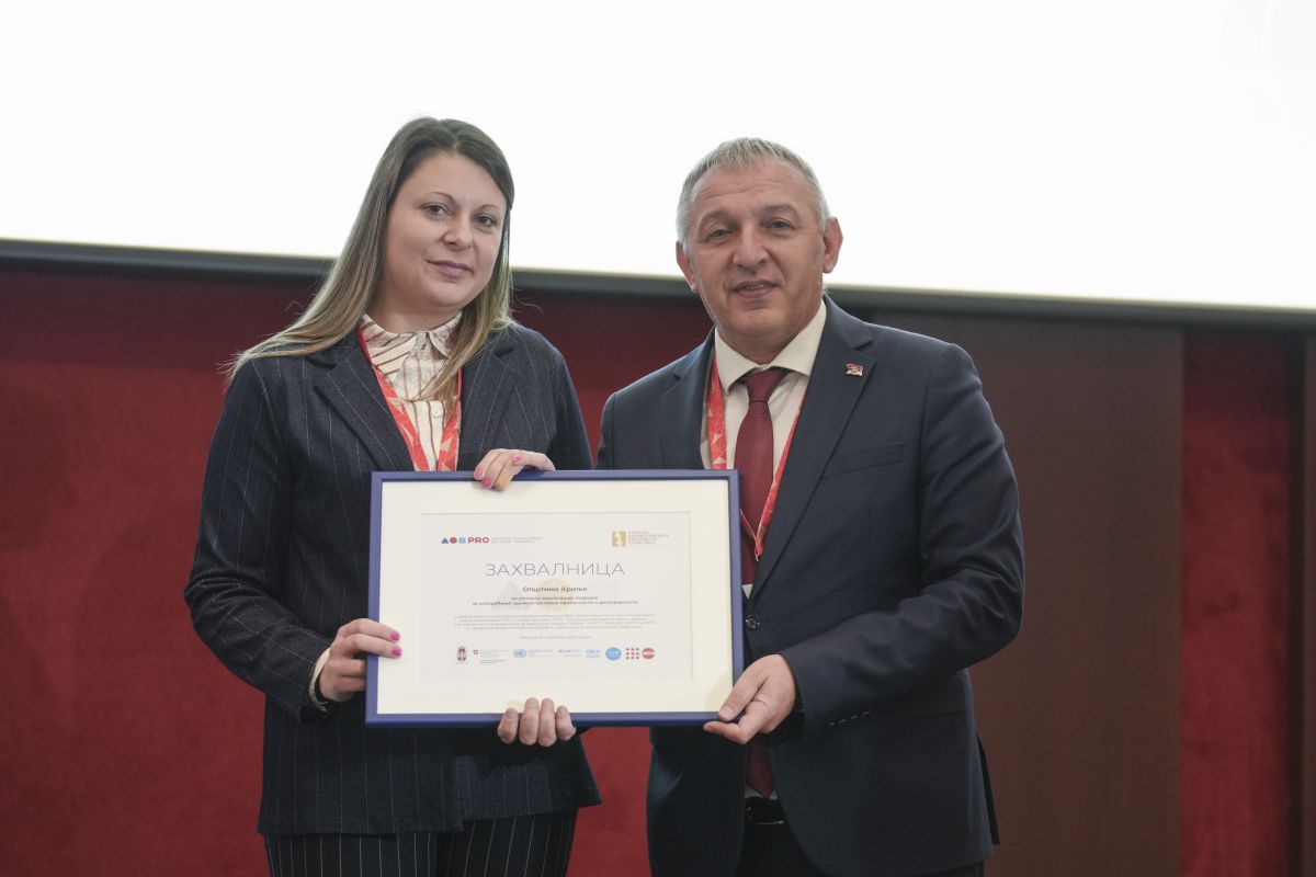 Zahvalnice su uručili Goran Cvetanović, predsednik SKGO i gradonačelnik Leskovca, Zoran Kasalović, državni sekretar Ministarstva državne uprave i lokalne samouprave, An Lugon-Mulen, ambasadorka Švajcarske Konfederacije u Srbiji i Marko Vujačić, šef programa Kancelarije Ujedinjenih nacija za projektne usluge (UNOPS) za Jugoistočnu Evropu.