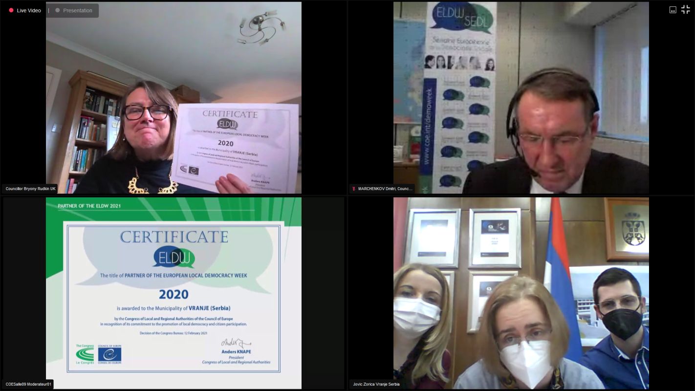 U petak 26. februara održan je godišnji koordinacioni sastanak Evropske nedelje lokalne demokratije (ENLD) na kome je predstavljen izveštaj o aktivnostima na obeležavanju ove manifestacije 2020. godine čija je tema bila “Lokalna demokratija: izgradnja poverenja. Ko-dizajniranje lokalne demokratije zajedno sa građanima i praktikovanje otvorene uprave”.