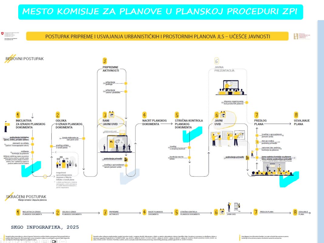 Radionice su bile namenjene predsednicima i članovima opštinskih/gradskih Komisija za planove, koje predstavljaju jedinstven mehanizam koji podržava procese izrade i sprovođenja urbanističkih i prostornih planova. Ustanovljene su zakonskim rešenjima iz 2003. godine i čine specifičan model upravljanja na više nivoa. Sve jedinice lokalne samouprave imaju formirane komisije za planove, koje bi trebalo da čine priznati, licencirani stručnjaci iz oblasti planiranja. Njihova uloga obuhvata stručno praćenje i davanje mišljenja tokom pripreme i usvajanja urbanističkih i prostornih planova, kao i prilikom njihove primene.