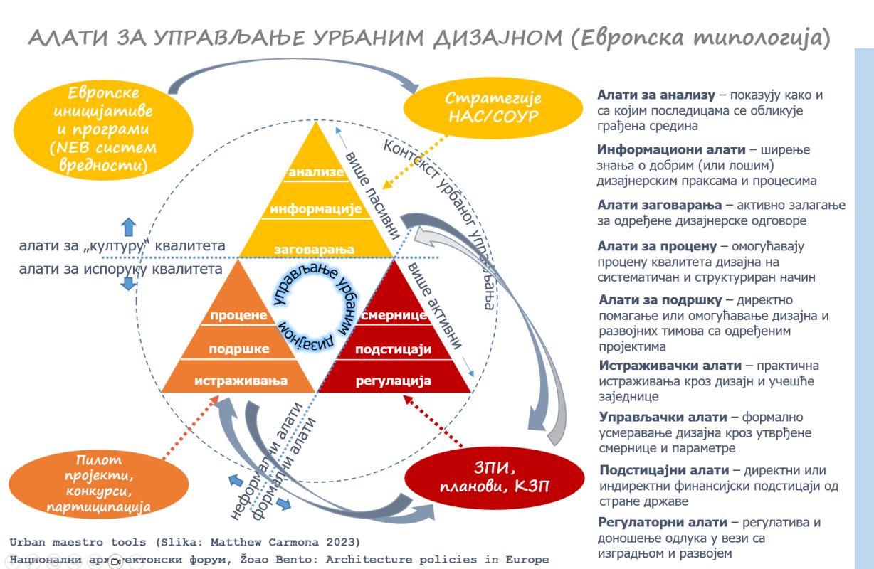 Učesnici su imali priliku da se upoznaju sa primerima lokalnih arhitektonskih politika evropskih gradova, kao i sa instrumentima za uspostavljanje i kontrolu kvaliteta koji su tamo primenjeni. Predstavljene su i preporuke za unapređenje planerskih pristupa koje bi mogle doprineti preciznijem definisanju pravila građenja u planskim dokumentima. Tokom diskusija razmatrana je uloga svih aktera u procesu izrade planova, sa posebnim osvrtom na komisije i glavne urbaniste u sredinama gde su uspostavljeni.