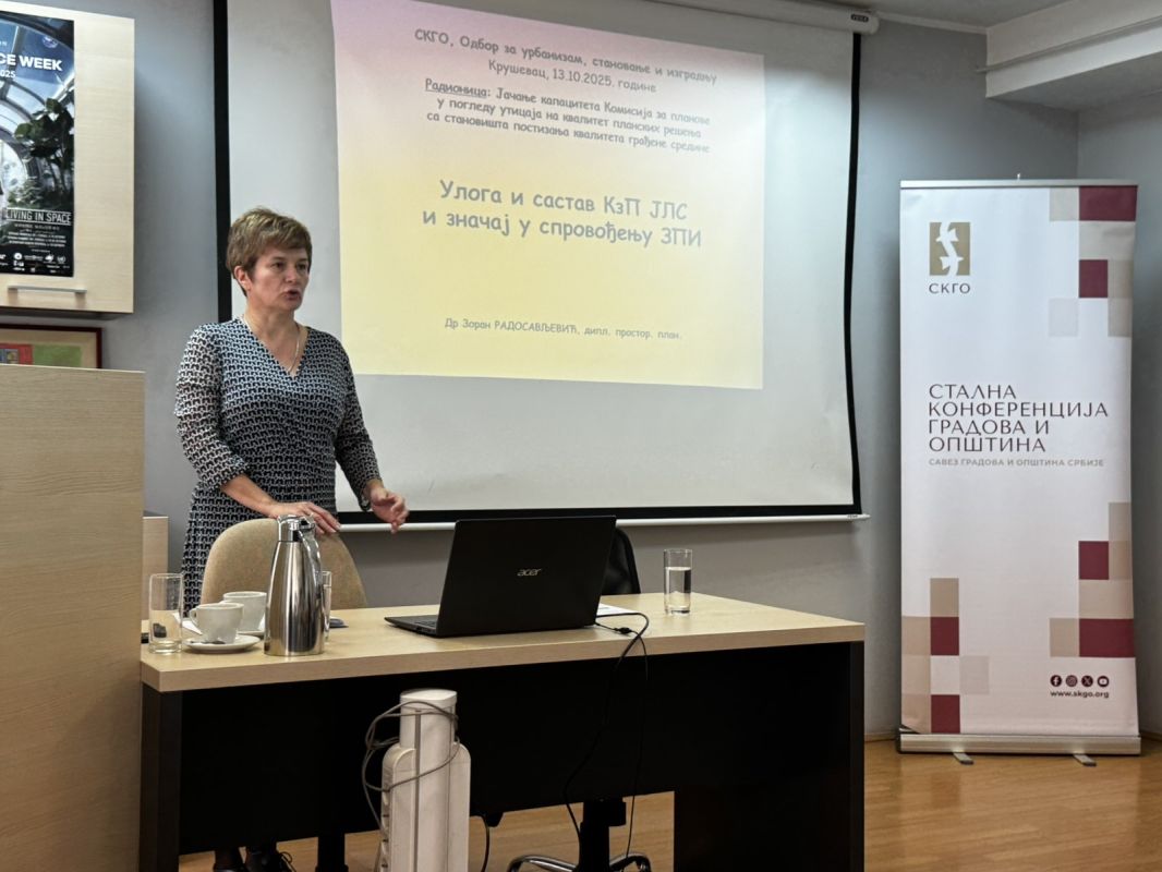 Stalna konferencija gradova i opština (SKGO) organizovala je tokom oktobra 2025. godine tri regionalne radionicen u Kruševcu, Rumi i Kragujevcu, pod nazivom „Jačanje kapaciteta Komisija za planove u pogledu uticaja na kvalitet planskih rešenja sa stanovišta postizanja kvaliteta građene sredine“.