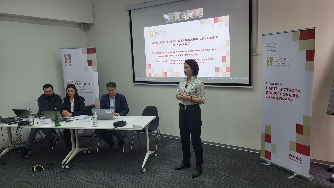 Stalna konferencija gradova i opština (SKGO) održala je 2. aprila 2026. godine u Beogradu sastanak Mreže za lokalne finansije. Skup je organizovan u okviru Programa „Partnerstvo za dobru lokalnu samoupravu", koji podržava Vlada Švajcarske. Sastanku su prisustvovali predstavnici lokalnih samouprava iz cele Srbije, a razmatrane su ključne teme iz oblasti lokalnih finansija.